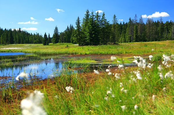 Voda hučí po lučinách,